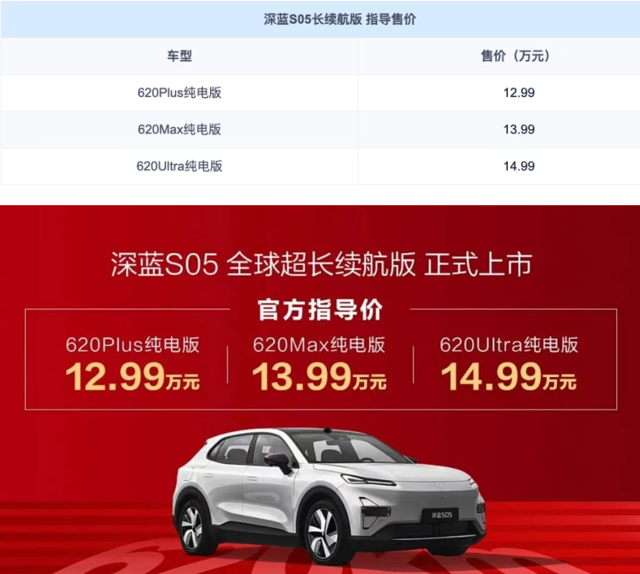深蓝汽车旗下深蓝S05长续航版系列正式上市,共推出3款车型,售价区间为12.99-14.99万元。深蓝S05长续航版依旧定位紧凑型SUV,车型配置上进行了优化调整,同时续航方面进行了提升,CLTC工况下最大续航里程可达620公里,并全系标配3C超充,电量从30%~80%仅需15分钟。