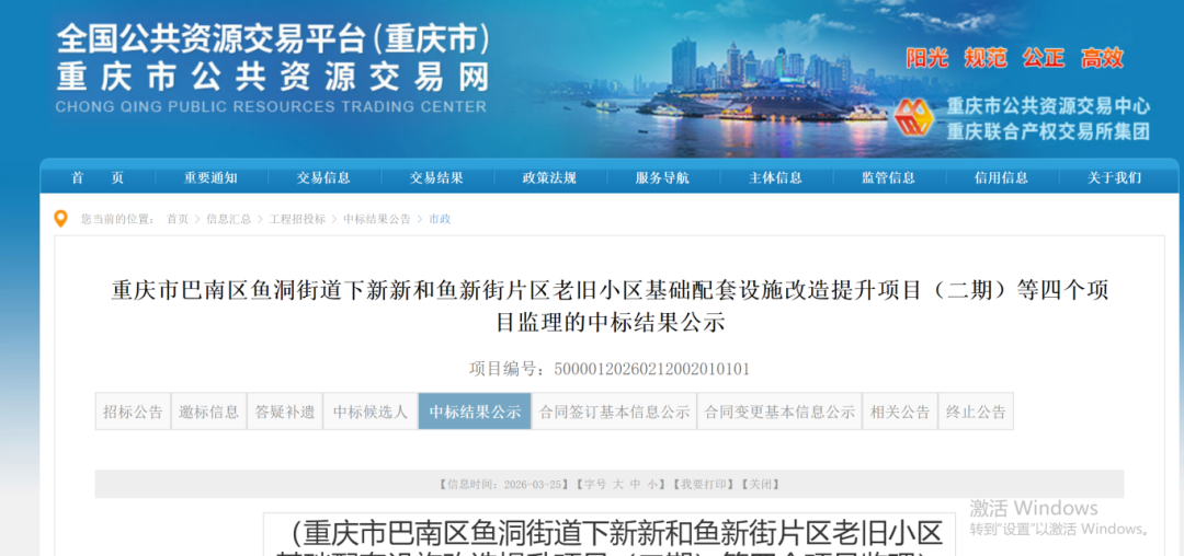 项目名称:重庆市巴南区鱼洞街道下新新和鱼新街片区老旧小区基础配套设施改造提升项目(二期)