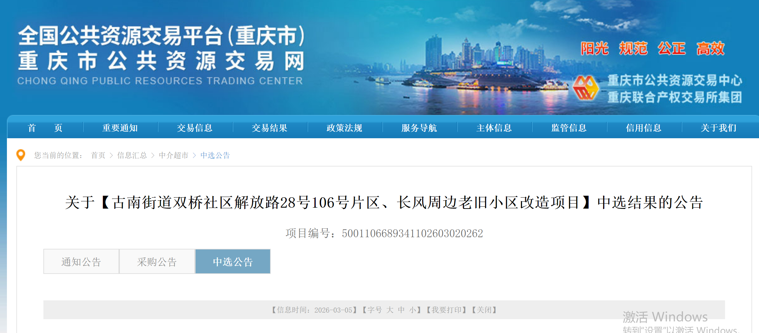 项目名称:古南街道双桥社区解放路28号106号片区、长风周边老旧小区改造项目