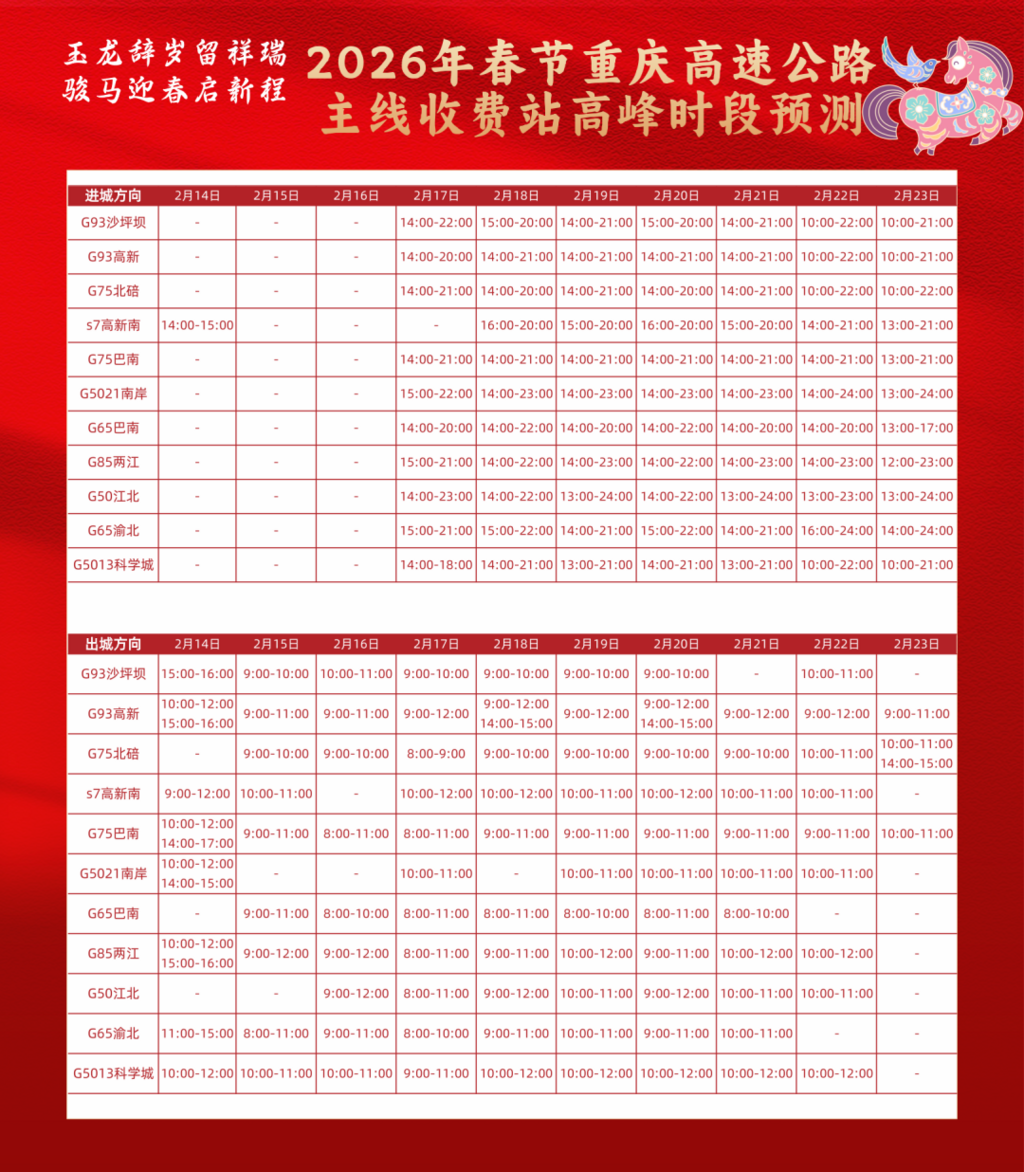 2月7日,重庆高速集团发布重庆高速公路2026年春节出行服务指南。