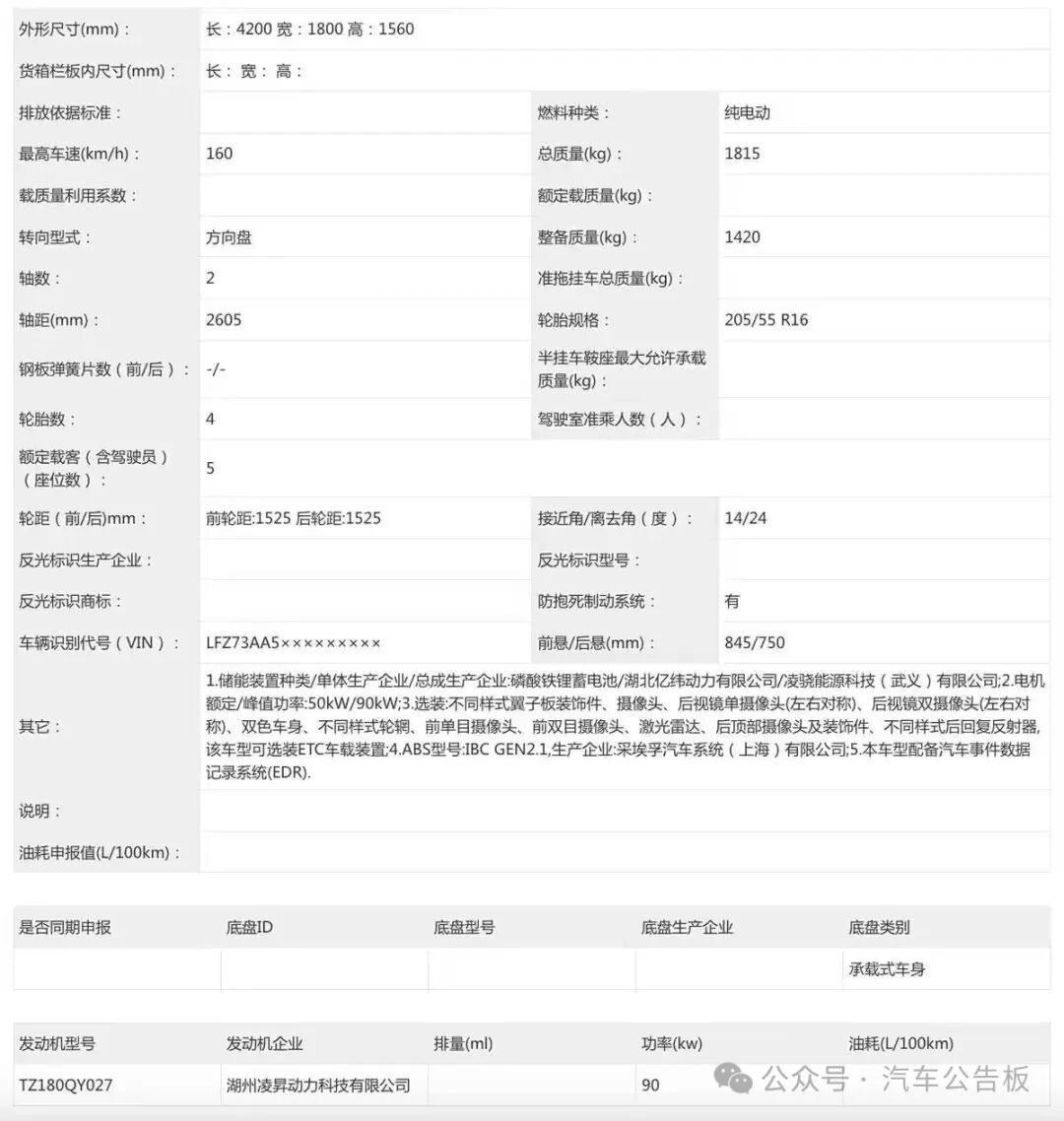 动力方面,新车的电机功率为90kW,此前申报的入门版为70kW。需要注意的是,零跑A10就有两个版本,分别是低功率的70kW和高功率的90kW,刚好和零跑A05一致。电池依旧是磷酸铁锂。